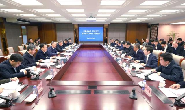 吴正国对长期以来关心支持江南大学建设发展的无锡市委、市政府表示感谢。他指出,“十四五”时期市校双方始终坚持“名城名校、彼此赋能”的合作共识,学校紧扣“教育强国,江南何为”和“服务无锡,江南何为”时代命题,积极为无锡在中国式现代化新实践中“走在前、做示范”贡献力量。市校双向奔赴、良性循环、共赢致远的使命共同体、发展共同体和伙伴共同体更加巩固。面向“十五五”,学校初步形成了以“与城市同频,与产业共振”为目标理念,以“双向赋能”为主线的合作共建思考,核心是实施“科产教融合”赋能产业、“产医研融合”赋能医疗两大合作共建工程及系列项目。他表示,学校将切实抓好“十五五”这一历史性窗口期,把学校的建设更深地融入无锡发展大局,以更高水平的教育供给、更高质量的科技创新、更高层次的人才培养,成为助推无锡产业升级、城市能级跃升的重要引擎。