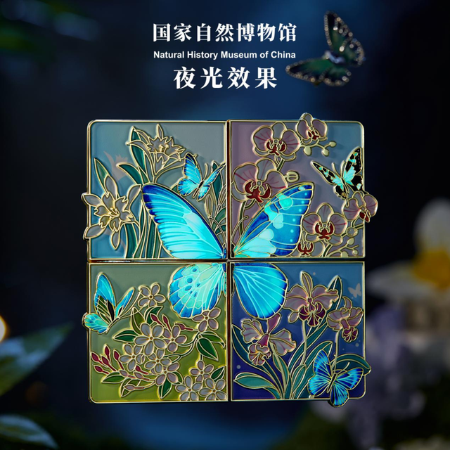 凡在我馆二层文创店一次性消费金额超299元,即可获赠我馆热门文创产品——热带蝴蝶夜光冰箱贴一个(85元/个)