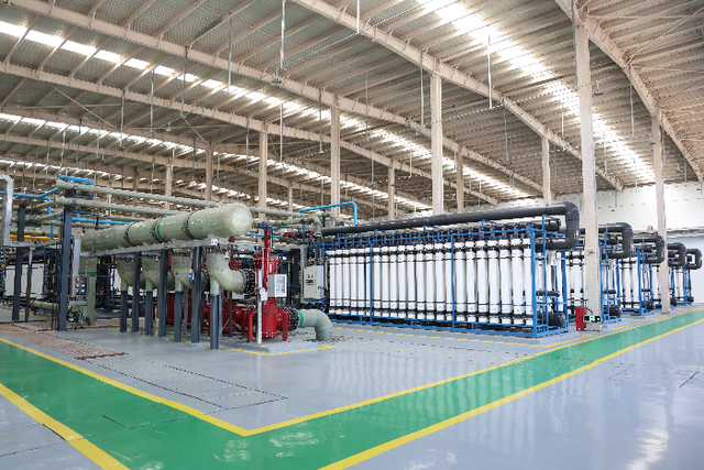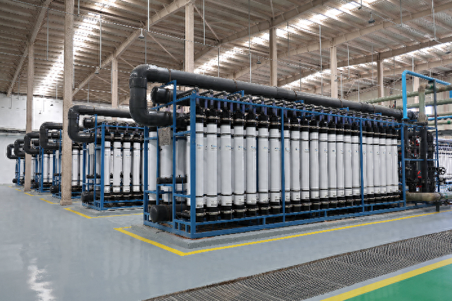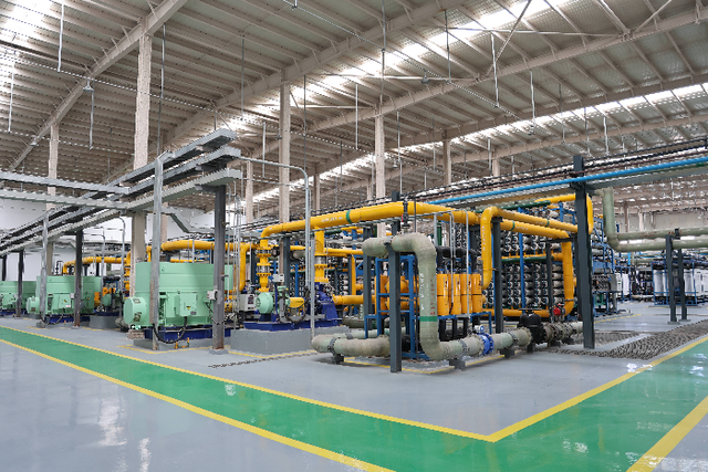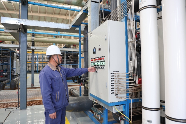 滨州日报/滨州网讯 车间外,一座座预处理水池在阳光下泛着波光,蓝色的钢结构管廊横贯其中;车间内,一排排超滤膜组、反渗透膜组整齐地矗立,膜组管线与粗壮的供水管道交织成网络;中控室里,一块大屏幕密密麻麻地显示着各车间的实时画面,身着蓝色工装的员工正通过电脑对全厂的设备进行监控。这是近日,记者走进无棣鑫岳化工集团有限公司海水淡化项目现场看到的景象。这个总投资2.5亿元的重点项目,正以日产2.4万吨淡水的高效产能,持续为滨州北部沿海工业注入“水动力”。