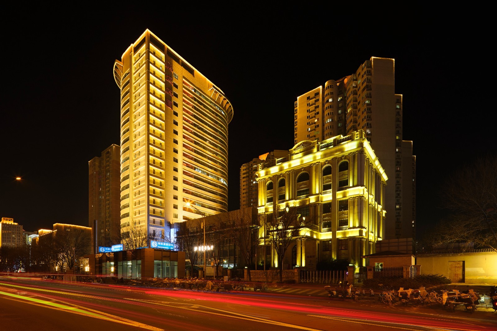 改造前,该路段夜间整体亮度不足,大部分建筑缺乏照明,部分既有照明设施在光色、技术和灯具类型上明显滞后,导致城市夜景界面断裂、夜间环境品质较差、夜生活空间受限。此次提升坚持“分类施策”,对效果较好的现有灯具予以保留并纳入统一控制,对效果不佳的进行更新提升,对无照明设施的建筑新增“量身定制”的灯光设施,最终将曾经断裂的夜景片段连接成完整的夜间画卷。