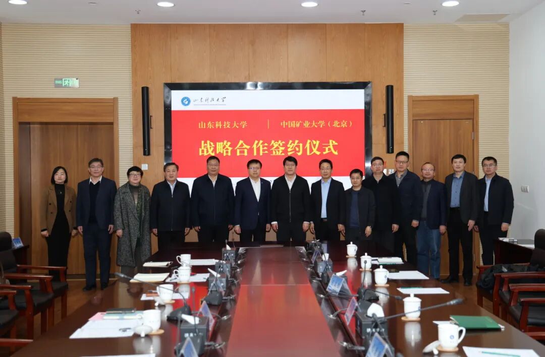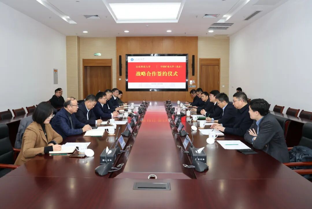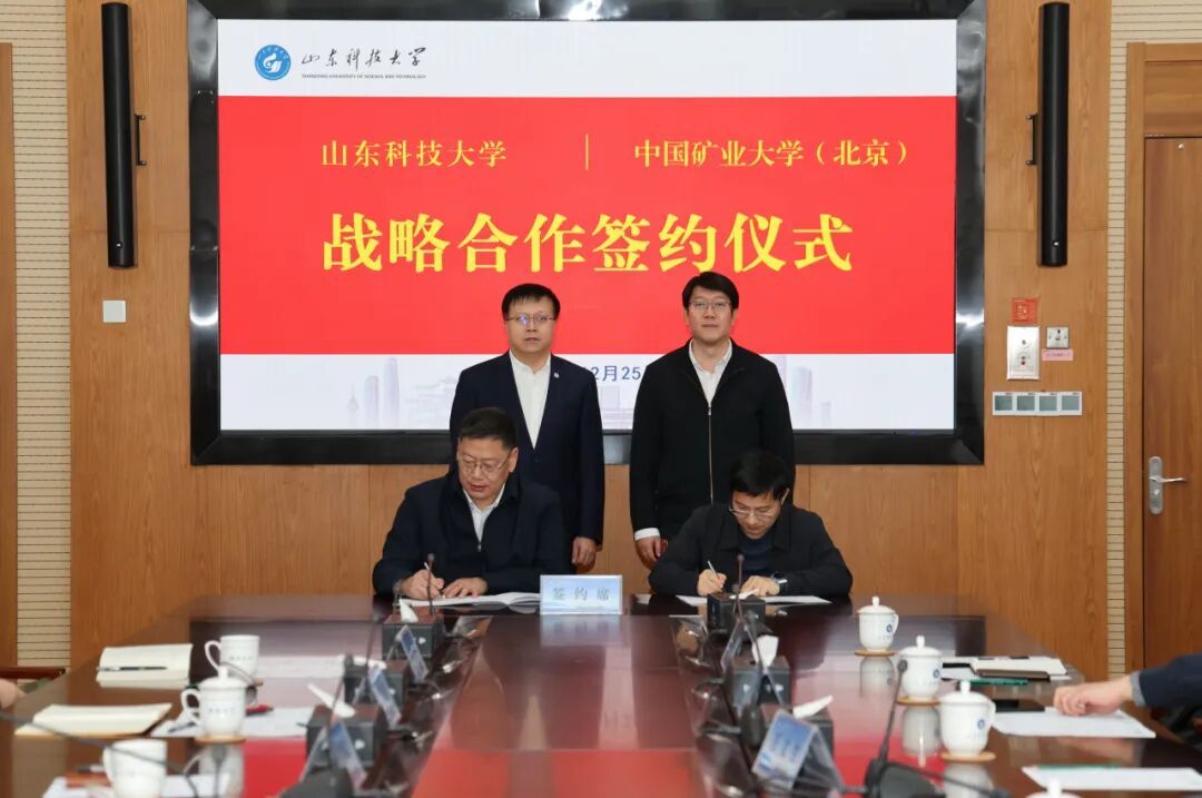 12月25日,中国矿业大学(北京)与山东科技大学签署战略合作协议。校党委书记韩尚峰、山东科技大学党委书记王君松共同见证协议签署,并就深化战略合作开展座谈交流。中国科学院院士代世峰,山东科技大学副校长诸葛福民,学校副校长汪文生、校长助理阳凡林等出席活动。