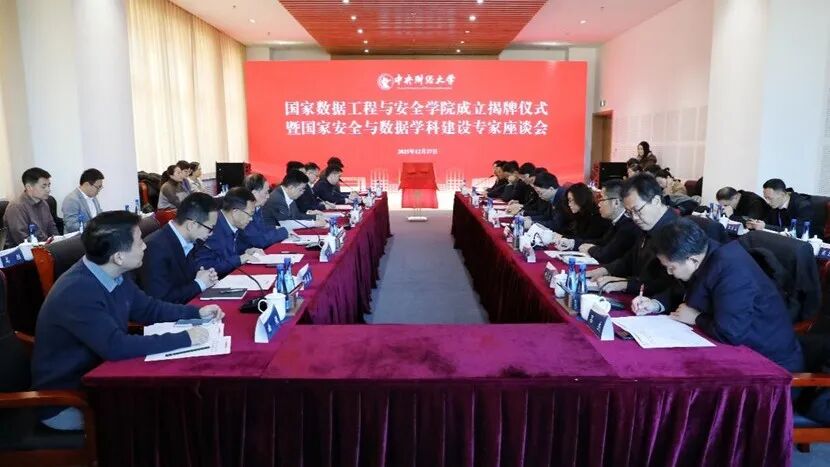 12月27日上午,中央财经大学国家数据工程与安全学院成立揭牌仪式暨国家安全与数据学科建设专家座谈会举行。来自国家统计局、国家数据局、北京市委有关部门、国防大学、中国人民大学、华东师范大学、中国现代国际关系研究院、中央民族大学等单位的领导专家出席,共同见证学院成立,共商数据工程支撑下的国家安全学建设专题。校长马海涛致辞,各单位、部门代表50余人参加了本次会议。揭牌仪式与专家座谈会由校党委常委、副校长李建军主持。