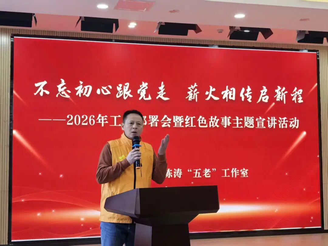 活动现场,工作室负责人陈涛介绍,“五老”即老干部、老战士、老专家、老教师、老劳模,其拥有25年部队服役经历,是一名名副其实的老战士。他表示,这块沉甸甸的牌匾,既是对“五老”群体忠诚敬业、无私奉献精神的肯定,更是一份沉甸甸的责任。站在新的起点上,工作室将紧扣“红色传承铸魂、精准关爱育人、品牌建设赋能”主线,2026年重点推进以下几项工作。