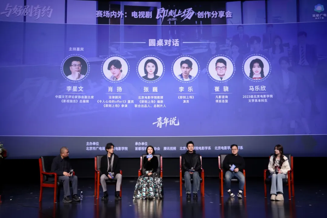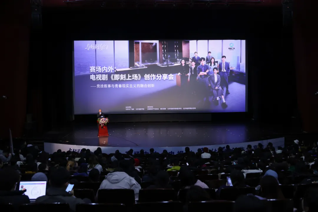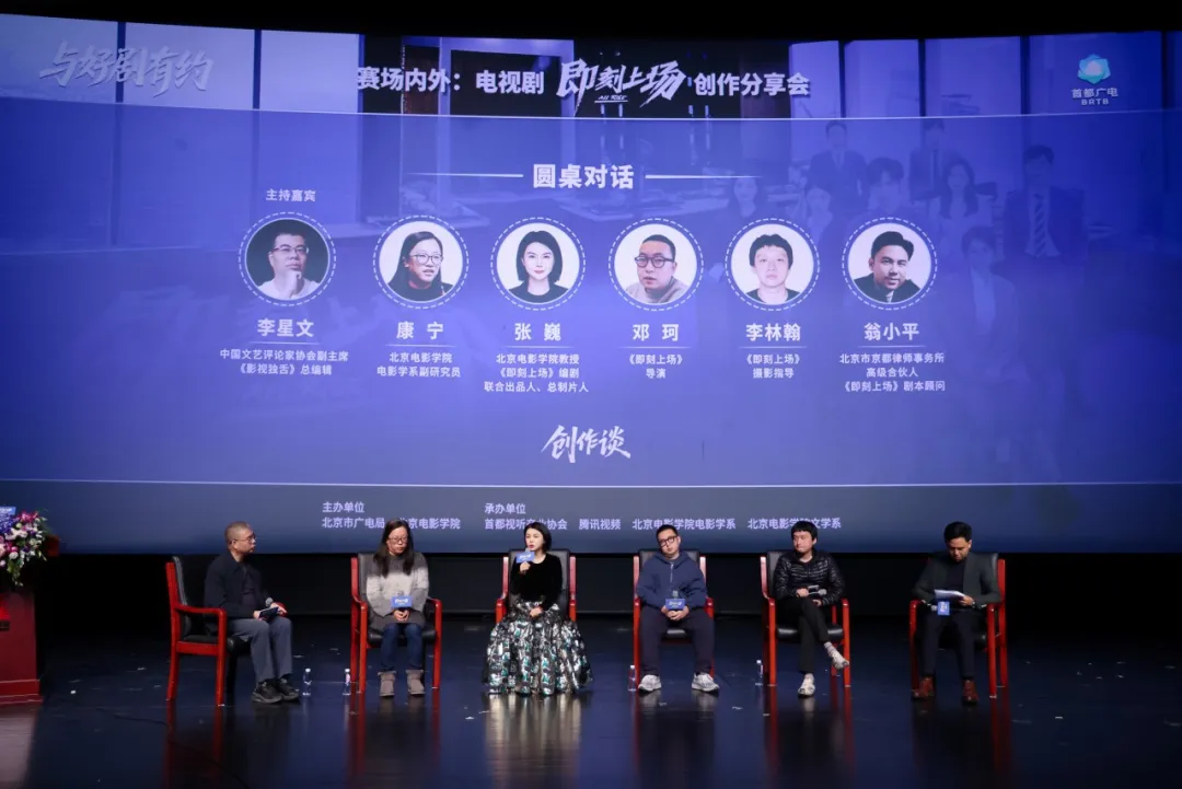12月26日下午,由北京市广电局、北京电影学院主办,首都视听产业协会、腾讯视频、北京电影学院电影学系及文学系共同承办的“赛场内外:电视剧《即刻上场》创作分享会”在北京电影学院标准放映厅举行。