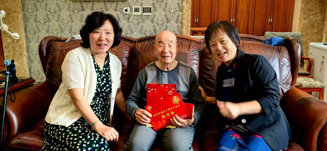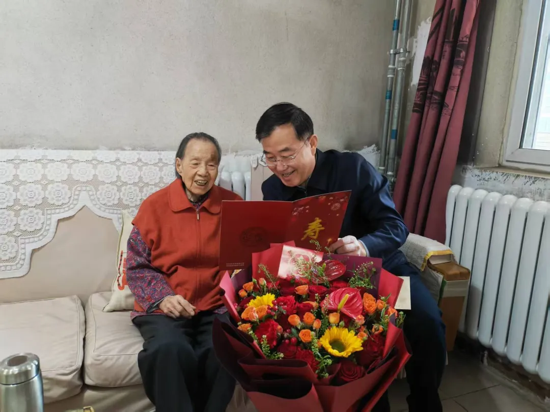 近日,怀柔区委老干部局局长王立娟、副局长王占军,区园林绿化局副局长秦建国一行赴离休干部刘淑珍家中祝贺百岁生日。慰问组向刘老致以诚挚祝福,仔细询问老人日常饮食起居及照料情况,叮嘱家属要悉心照顾,让老人安享幸福晚年。交谈中,慰问组与老人共同追忆过往岁月,对其年轻时为国家建设、地区发展作出的贡献表达崇高敬意。随后将慰问品送到老人手中,刘老表示:“感谢组织一直记挂着我,这份心意比什么都珍贵。”