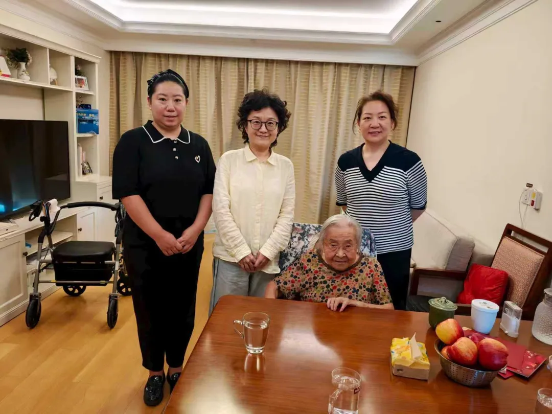 在离休干部滕世杰百岁寿辰之际,由东城区教工委老干部科牵头、东城区东四七条小学校长带队赴滕老家中,为她送上生日祝福。慰问组转达了市委、区委老干部局领导的关心,送上慰问金和慰问品,并详细询问老人饮食起居与身体状况。滕老感谢市委、区委老干部局,区教委及学校长期以来对她的关心和帮助,主动询问教师队伍建设、党员队伍培养等工作情况。教师代表介绍了学校近年来的发展成果与未来规划,感谢滕老为学校奠定的坚实基础和长期以来的关心支持。