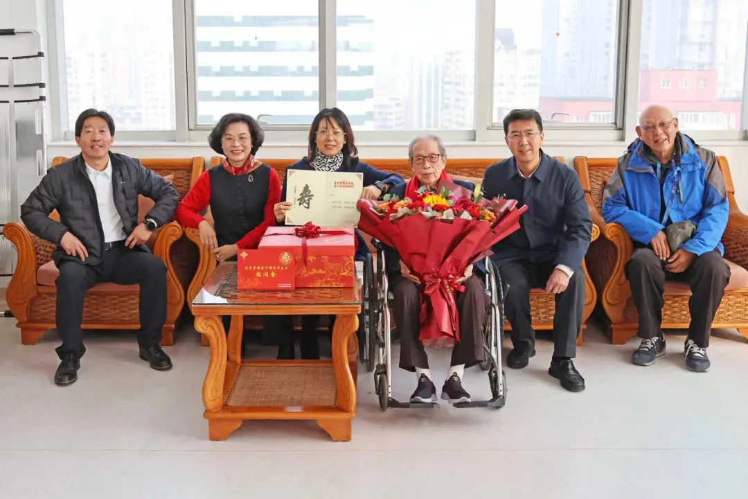 首都经济贸易大学离退休人员党委、离退休工作处赴离休教师武金铭家中,为其举办百岁寿辰祝寿活动。慰问组代表学校献上生日蛋糕以及寿礼,详细询问老人的身体状况、生活情况与实际需求,认真听取武老对学校发展的意见建议,祝愿老人身体健康,生活幸福。武老对学校的关怀深表感谢,深情回顾了在校工作的岁月,并表示为学校今日的发展成就感到由衷自豪,将继续关注和支持学校工作。