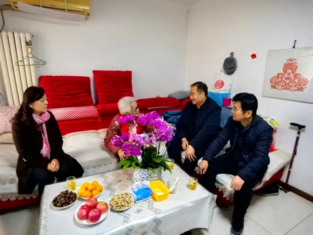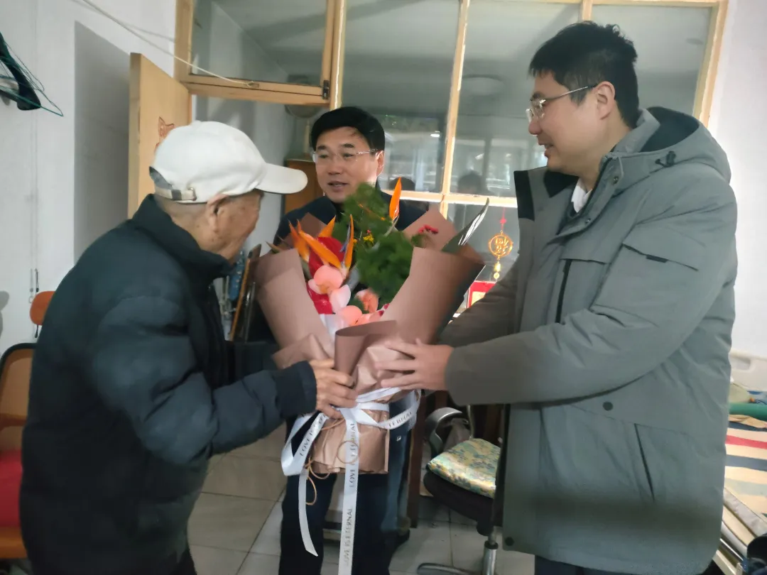 12月26日,怀柔区委老干部局副局长与区教委、相关学校领导一同看望慰问百岁寿辰的王宝田同志,送上真挚祝福与组织关怀。在王老家中,慰问组详细询问老人的饮食起居与身体状况,转达了区委、区政府的诚挚问候,高度肯定王老为党和国家事业、为怀柔区发展建设作出的积极贡献。王老对组织的专程看望与深切关怀表达了由衷感谢,言语间满含对党的感恩之情。家属对各级组织长期以来的关心照料表示诚挚谢意,表示正是这份持续的温暖让老人得以安享幸福晚年。