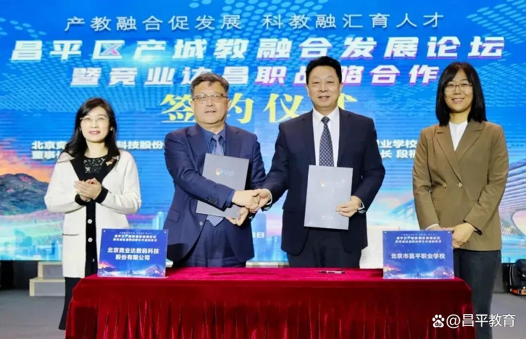 ▲昌平职业学校与北京竞业达数码科技股份有限公司签署战略合作协议,成立竞业达科教产城融汇学院