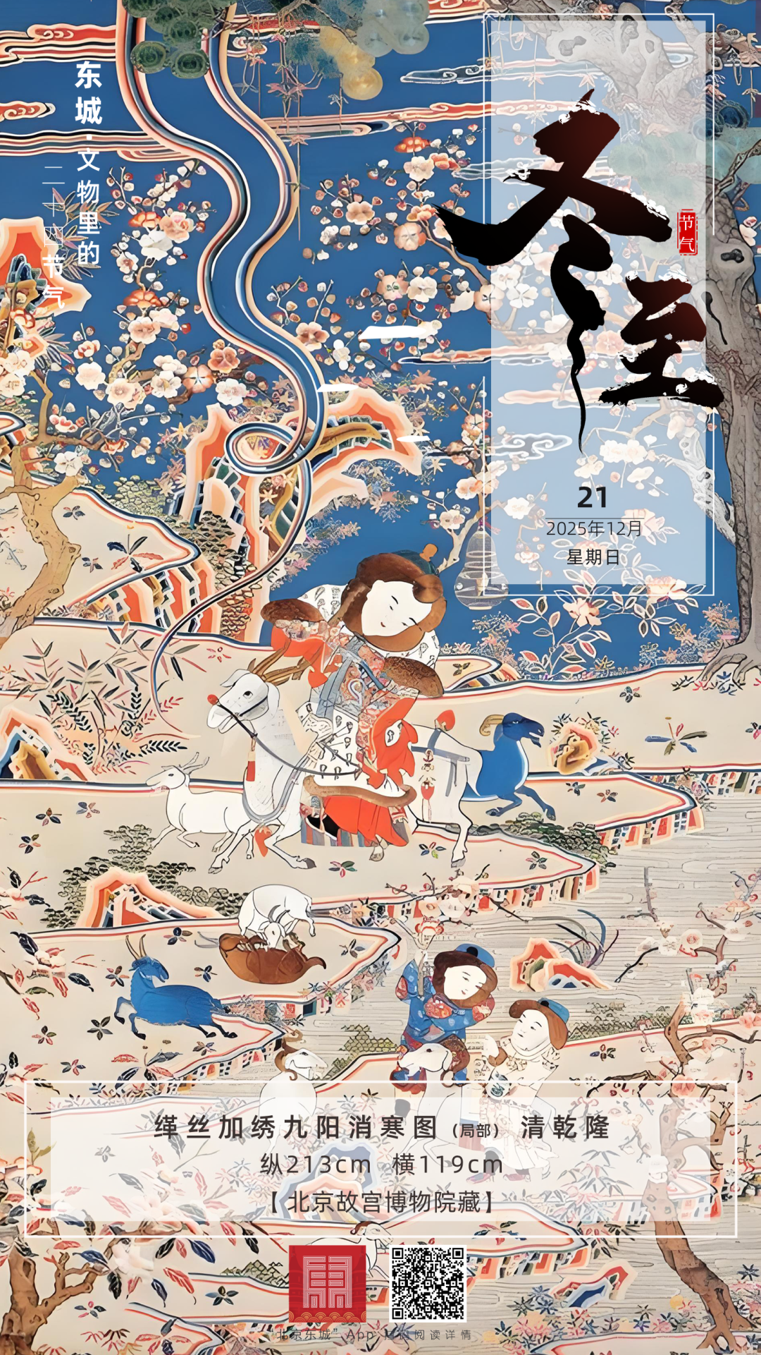 《东城·文物里的二十四节气》系列独具巧思,将东城的文物资源与二十四节气相结合,打造出一场文物古迹与自然节律的浪漫邂逅。春分赏黄地粉彩梅花春燕纹碟,感受草长莺飞的生机盎然;夏至品粉彩莲塘鹭鸶图瓶,享受碧荷红莲带来的一丝清凉;秋分观《云岩秋霁图》扇页,“穿越时空”,感受一场明代的秋色;冬至赏清乾隆缂丝加绣九阳消寒图,看岁寒三友凌寒盛开……