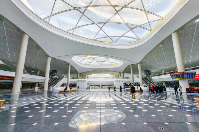 枢纽通过“京帆”屋盖的透明ETFE膜结构引入自然光,打造“阳光车站”,实现“地下空间地面化、室内空间室外化”的立体共享体验。