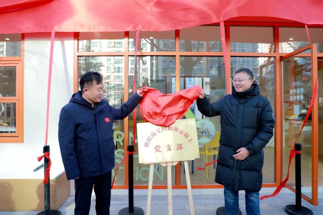 仪式现场,区委社会部部长徐宏桢与淘宝闪购党总支书记周宏声共同为“朝阳淘宝闪购城市骑士党支部”揭牌。