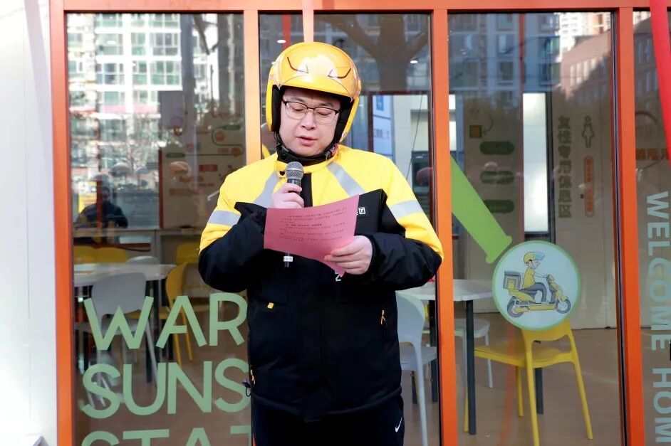 北京市委社会工作部四处赵一达,朝阳区委社会部部长、区委“两新”工委书记徐宏桢,朝阳区总工会党组书记、常务副主席邢伟,区委组织部组织二科科长杨春萌,太阳宫地区工委书记陈鹏,副书记、总工会主席杨帆与来自淘宝闪购、顺丰、美团、京东等平台的60余名新就业群体代表、友好商户代表共同见证这一暖心时刻。