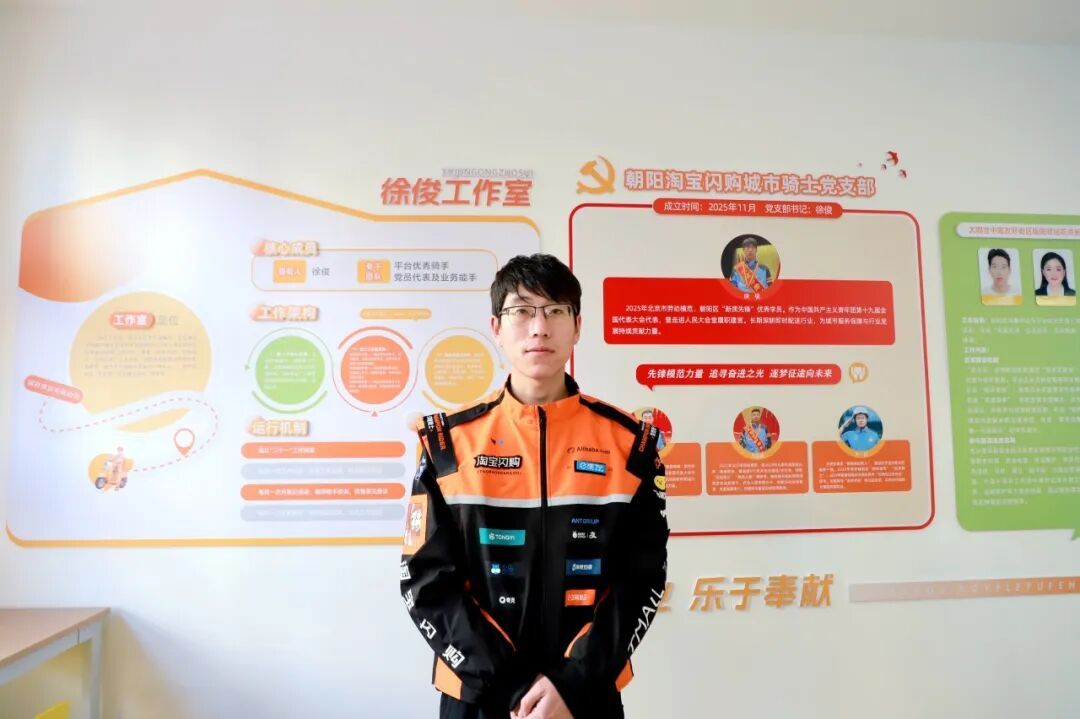 在驿站一角,“徐俊工作室”的牌子格外醒目。作为北京市劳动模范、朝阳淘宝闪购城市骑士党支部书记,徐俊切实发挥示范引领作用,将工作室打造为骑手学习交流、议事协商、心理健康咨询、志愿服务的红色阵地,逐步形成 “党支部引领、党员带头、骑手参与” 的共治格局。
