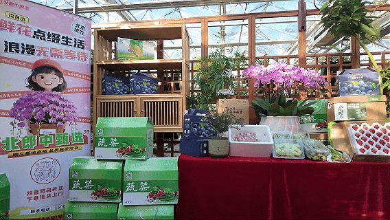 想置办年货的朋友,在年宵花展厅还可以“一站式”购齐“顺义特产”。北郎中农产品展示区里,面粉、猪肉、鲜菜、草莓,品种丰富,市民可以通过实物展示了解北郎中产业发展成就。