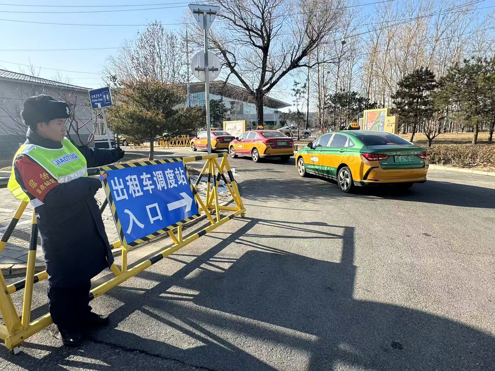 近日,市重点站区管理委员会北京朝阳站地区管理办公室启用东广场临时蓄车区,通过因地制宜的空间复合利用,将闲置时段的公交车备用停车区灵活转换为出租车临时蓄车区,可同时容纳50辆出租车有序停放候客。“空间复用+动态疏导”双管齐下,将原本溢出路面的排队车辆引导至场地内部,实现了“车进场等”,而非“车占路等”,提供了规范、安全的“港湾式”专属等候空间。