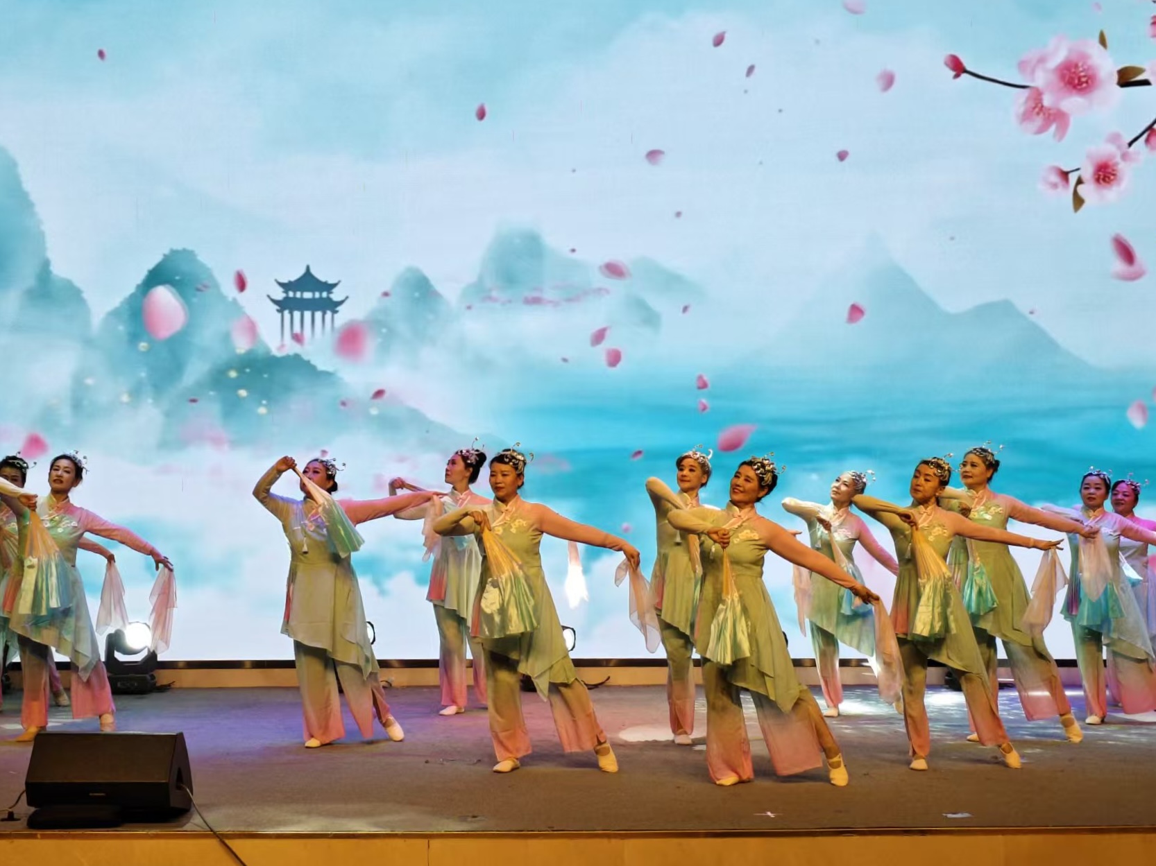 演出在红灯笼舞蹈《张灯结彩》中拉开序幕,喜庆的旋律与欢快的舞步瞬间点燃了现场气氛。情景剧《古都中轴线故事由儿》带领观众穿越古今,感受北京城深厚的历史底蕴;舞蹈《绿水青山》以盈盈绿意与袅袅水韵,舞出对家园的眷恋;诗朗诵《散步》于平淡中见真情,触动人心;广场舞《中国龙》融合戏曲与古典元素,气势磅礴;男声合唱《游击队之歌》铿锵有力,令人热血沸腾。越剧选段《金玉良缘》、旗袍秀《水韵江南》以及舞韵瑜伽《做你的雪莲》等节目,则从不同角度诠释了中华传统文化的优雅与韵味,彰显了群众文化的多元与深度。