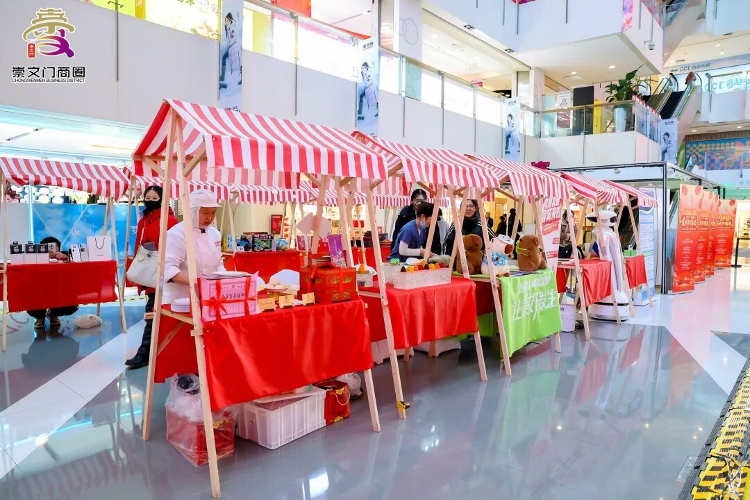 国瑞购物中心以“双景联动”的方式提升了商圈的颜值,西广场的烟花树核心造型与动态流光灯光相映成趣,成为夜间消费的视觉焦点;室内LG层中厅的年货市集一站式满足了美食、文创、年货特产等多元化商品的需求,同时融入了民俗表演、非遗技艺展示等文化元素,使消费场景与传统文化深度融合。摩方购物中心则创新性地推出了“以书为媒,年货聚惠”的活动,打造了融合图书、饮品、文创的户外移动书屋。崇文门菜市场同步进行了惠民促销活动,针对冬储大白菜等民生商品推出了优惠政策,精准满足了市民采购年货的需求。此外,名创优品旗舰店的IP美陈、新春纳福市集以及一系列传统文化活动将陆续亮相,进一步丰富了市民的体验。