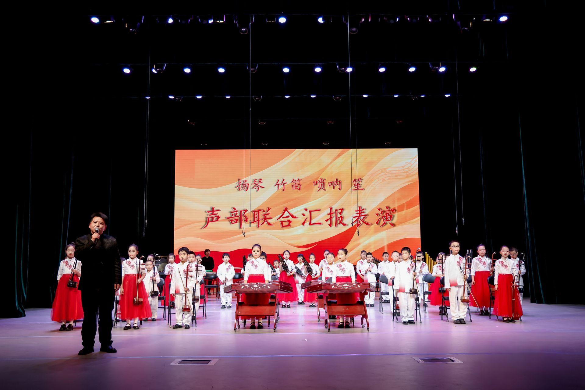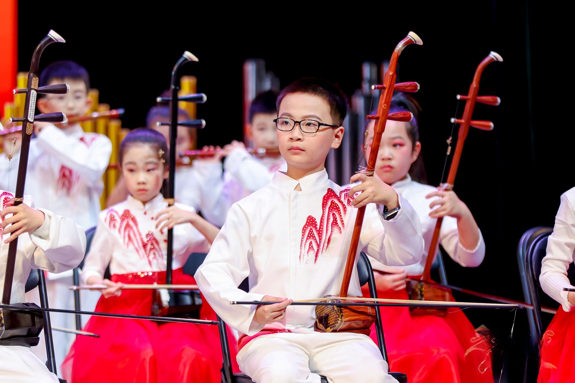 向阳小学“向阳之声”民乐团作为民乐新兴力量,带来了充满童真与热情的表演。琵琶齐奏《浏阳河》、二胡连奏《凤阳花鼓》等曲目各具特色,民乐合奏《铃儿响叮当》《金蛇狂舞》节奏明快,充分展现出孩子们对民族音乐的热爱与执着。