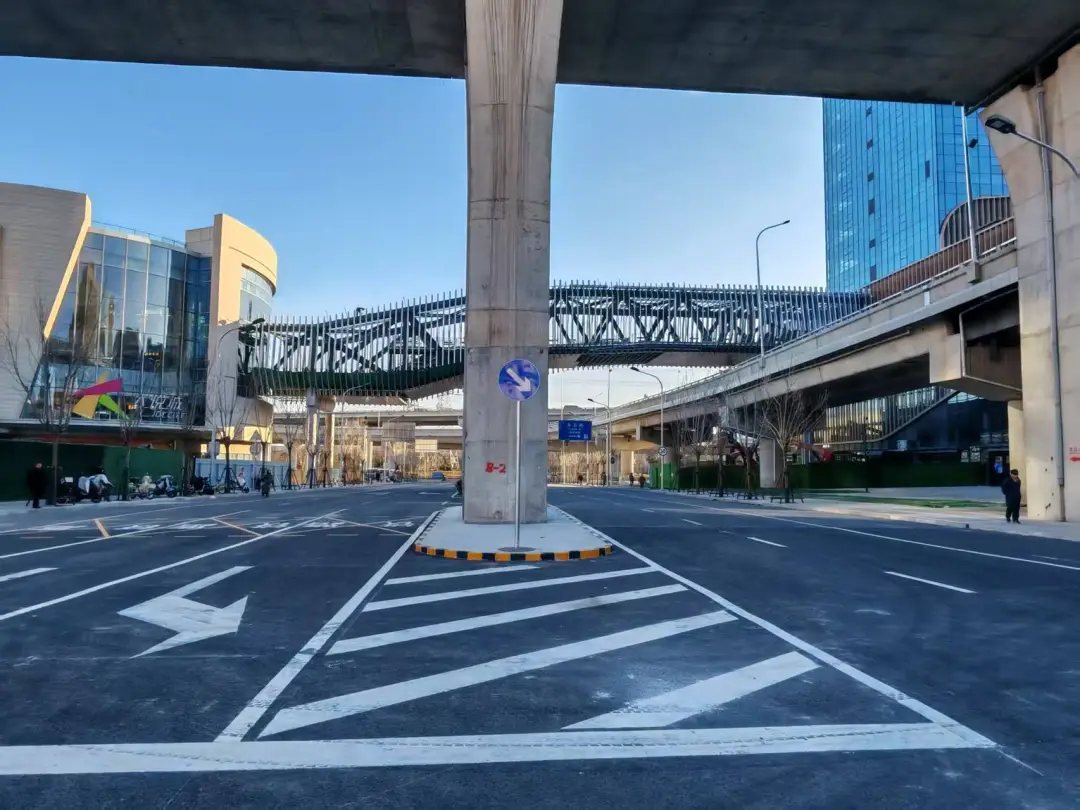 优化既有道路,改善片区通行。在对新建路网布局的同时,区城市管理委也对服务枢纽区域的苹果园路与苹果园南路实施了系统更新。通过车道拓宽改造、标志标线优化、信号灯智能配时等综合措施,两条道路的通行效率与安全水平实现双提升。其与新建配套路网共同构建出了层次分明、衔接顺畅的交通网络,不仅能保障综合交通枢纽高效运营,也显著改善整个苹果园地区的出行环境。