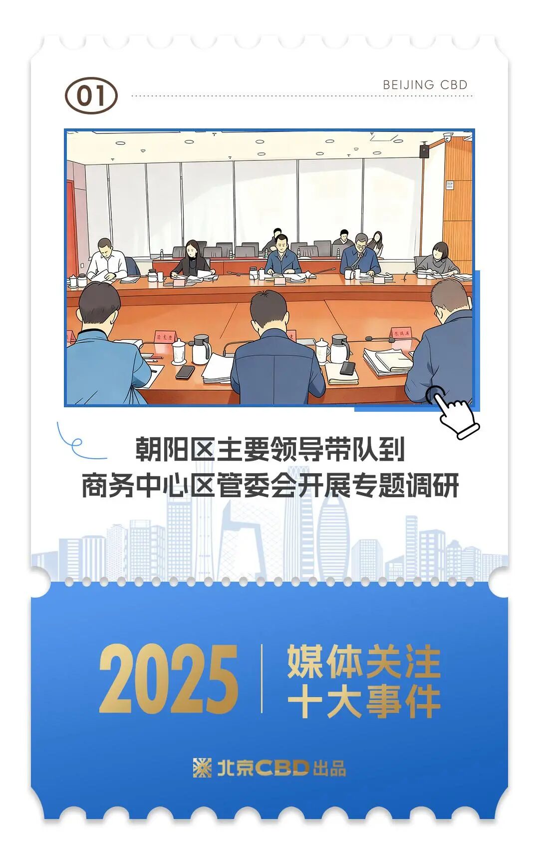2025年3月,时任朝阳区委副书记、区长吴小杰带队到商务中心区管委会开展专题调研,听取商务中心区管委会和CBD国际集团2025年重点工作汇报,研究部署下一阶段重点工作。12月2日,朝阳区委书记吴小杰围绕“深入贯彻落实党的二十届四中全会精神,持续推动商务中心区高质量发展”主题,到国贸桥及商务中心区调研城市环境治理相关工作。通过高频次主题调研为北京CBD高质量发展指明方向、擘划未来。