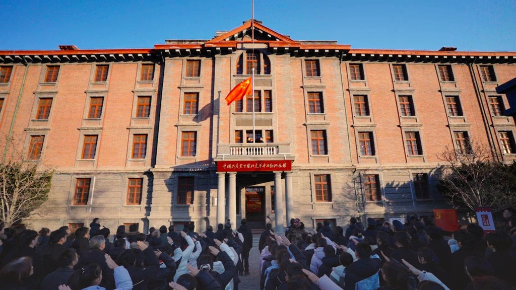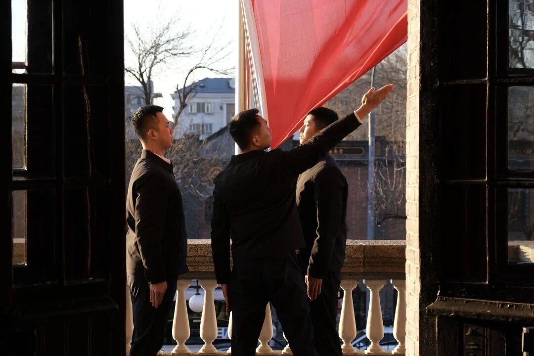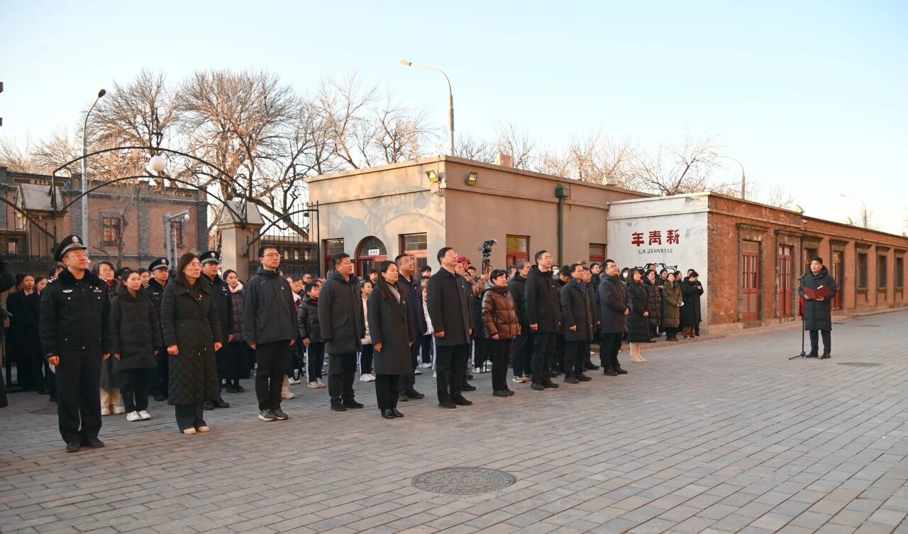 迎着2026年第一缕曙光,北大红楼在晨曦映照下庄重肃穆。8时30分,升国旗仪式正式开始。在嘹亮的国歌声中,全体人员庄严肃立、注目行礼,五星红旗在北大红楼上空迎风飘扬。