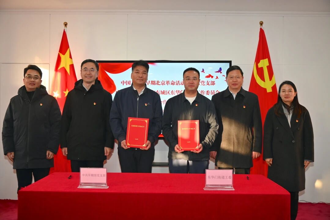 升旗仪式后,中国共产党早期北京革命活动纪念馆和东华门街道工委签署党建联建合作协议。双方围绕探索党建引领、街馆联动、文化赋能等文商旅体展新路径展开深度共建合作。东华门街道相关负责同志介绍,未来将通过街馆联建,串联起区域内红色地标,共同打造“从红楼走向红旗”党建联建品牌,推出“觉醒征途”City walk 探访线路,共同打造集文化展陈、互动体验、公共服务于一体的地区党群服务综合体等,为推动“十五五”规划在京华大地的生动实践注入红色动能。