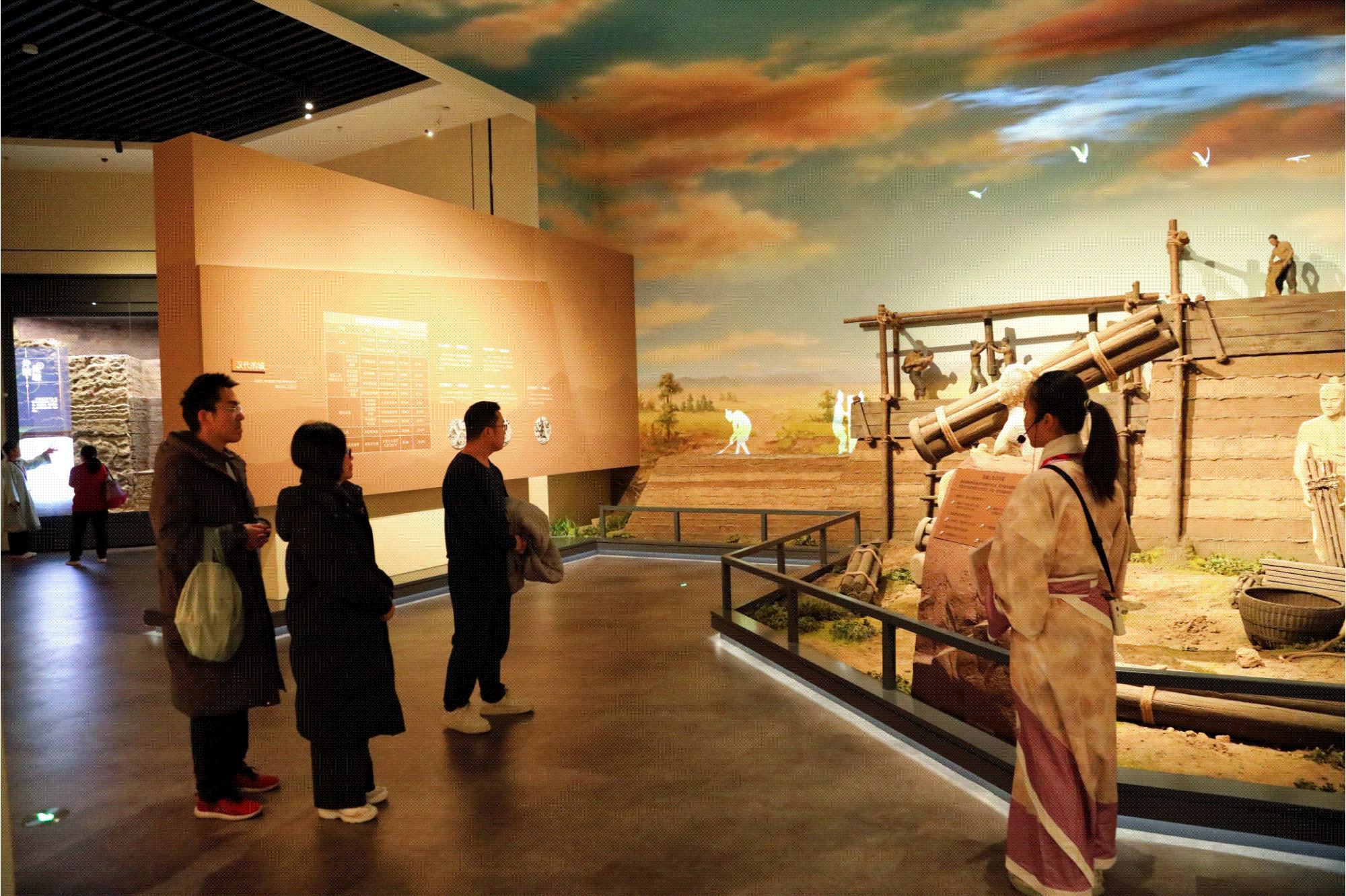 “汉风穿梭站—角色扮演”讲解活动亮点十足,“文脉守护团”和“路县少年说”志愿者身着汉服化身汉代人物,用生动有趣的演绎讲述路县故城的发展历程,让参观不再枯燥。不少游客跟着志愿者的脚步,仿佛穿越回千年之前的路县古城。
