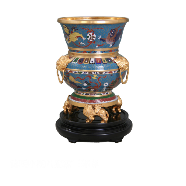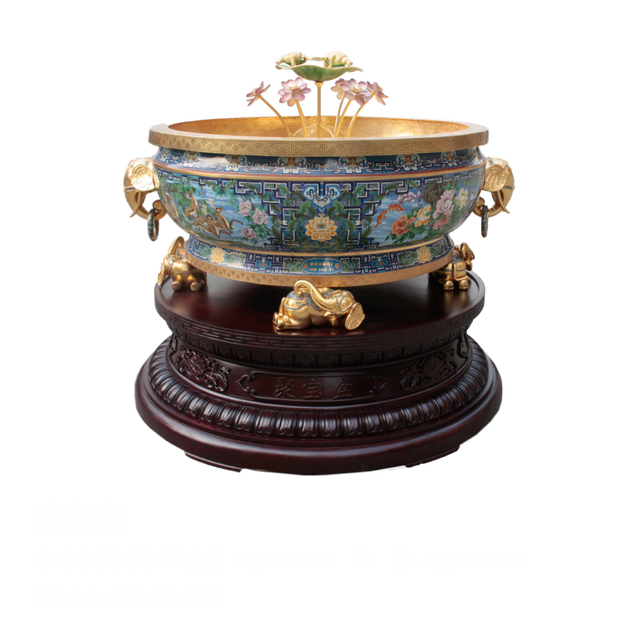 自元代沿丝绸之路迤逦而来,经明清两代宫廷匠心的千锤百炼,成为中华工艺美学的一座高峰。制胎、掐丝、点蓝、烧蓝、镀金、磨光——繁复工序方能成就一件景泰蓝的璀璨华光。铜板在工匠手中成型为骨,纤细铜丝被精心盘曲为画,釉料化作斑斓彩绘填入其中,再经历烈火熔炼与反复打磨,终成流光溢彩的艺术精品。
