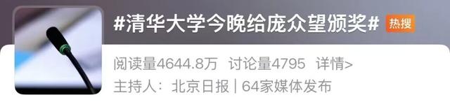 同日,“清华大学给庞众望颁奖”相关词条引发热议。