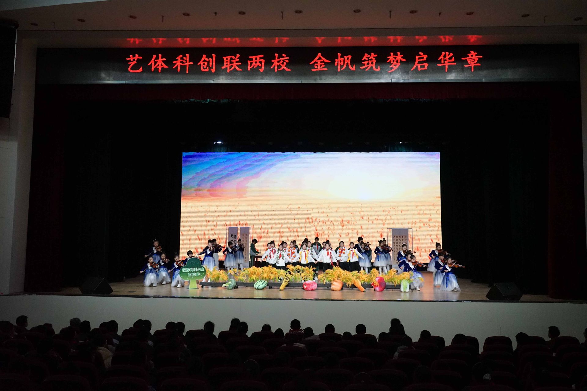 小提琴声悠扬响起,毛笔在宣纸上挥洒,无人机编队在空中划出优美弧线……2025年12月31日,以“艺体科创联两校 金帆筑梦启华章”为主题的社团嘉年华活动在北京市平谷影剧院举行。此次是北京市平谷区大兴庄中心小学与朝阳区垂杨柳中心小学馨园分校首次在区级舞台联合举办大型展演活动。
