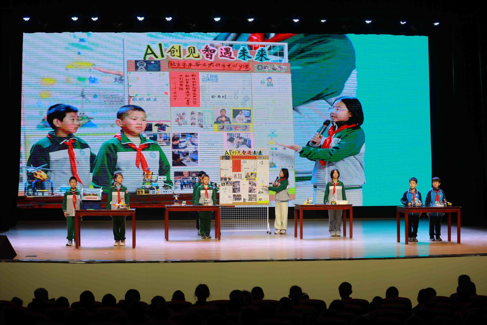 展演环节精彩纷呈,平谷区影剧院内,900多名师生和家长凝神观看,不时爆发出热烈掌声。《室内轻灵飞行秀》让模型飞机灵动穿梭,尽显科技魅力;舞蹈社团的《帕莎公主》舞步轻盈,舞姿优美;戏剧社团的情景剧《闪光的你》,以生动的演绎传递交通安全的重要性;足球篮球社团的《足蓝狂想曲》活力四射,将少年们的蓬勃朝气展现得淋漓尽致;《无人机智慧飞翔》,则用精准的操控与变幻的队形,奏响了科技与智慧的交响曲;诗朗诵《为自己鼓掌》字字铿锵,传递出少年自信昂扬的精神风貌;《AI创建 预见未来》带大家走进人工智能的奇妙世界;《琴韵染麦香 科技助丰年》,将提琴演奏、书法展示与现代农科技巧妙融合。