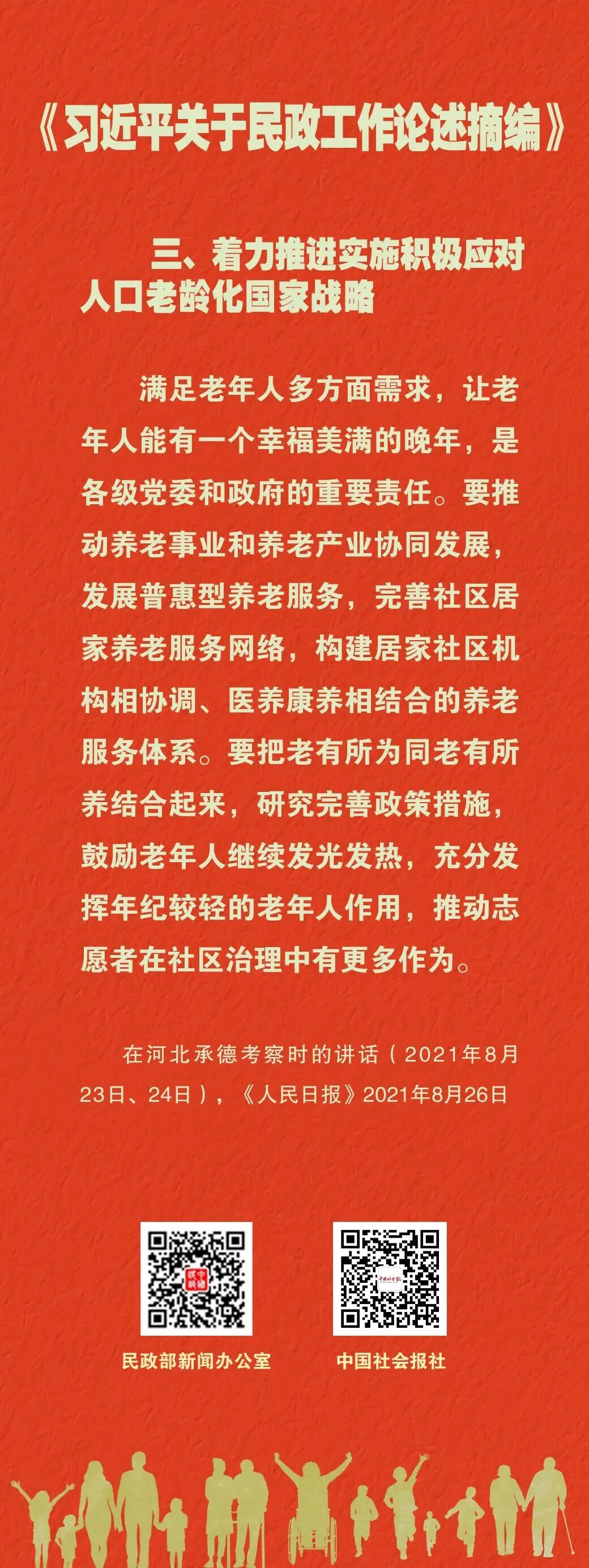 《习近平关于民政工作论述摘编》(以下简称《论述摘编》)已出版发行。《论述摘编》全面反映习近平总书记对新时代民政工作的深邃思考和重大部署,为深入学习领会习近平总书记重要论述提供了权威读本和最新教材。