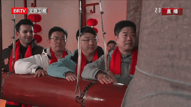作为2026北京新年倒计时“双主场”之一,位于海淀区的大钟寺古钟博物馆承载了文化祈福使命。跨年夜,72位来自海淀区科技、教育、医疗等领域的各界代表齐聚永乐大钟前。零时整,伴随着浑厚悠长的第一声钟响划破夜空,代表们共同推动钟杵,按照“一声钟响、八声鼓应”的节奏,让穿越600年时光的钟声与居庸关长城的激昂鼓阵隔空对话,上演了一场“钟鼓齐鸣”的传统文化交响。