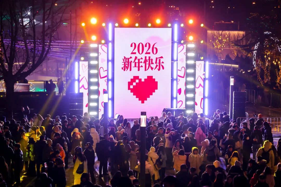与此同时,海淀的跨年狂欢在多个地标同步点燃。华熙LIVE·五棵松作为北京跨年倒计时分会场,以“马力全开 奔向2026”为主题,打造了一场户外跨年派对。民族舞、街舞、相声、歌曲串烧等精彩表演轮番上演,冷烟花秀《焰启新程》将现场气氛推向高潮。临近零点,全场观众与北京广播电视台跨年直播画面同步倒数,在绚烂光影与震耳欢呼中共同迈入2026年。