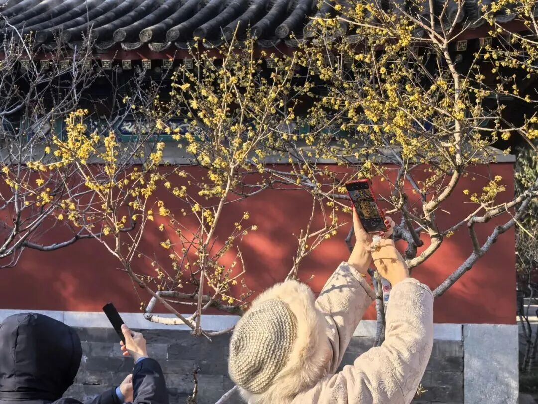 传统景区魅力不减。元旦假期,颐和园以23.43万人次的接待量位居全区榜首,圆明园遗址公园、紫竹院公园、玉渊潭公园、香山公园紧随其后。国家植物园(北园)卧佛寺内,早花蜡梅“十月梅”凌寒盛放,金黄的花朵映衬着红墙古寺,吸引大量市民前来寻梅赏景。香山公园则在元旦清晨于双清别墅举行庄严的升旗仪式,并在假期开展多场义务讲解,让游客在登高祈福的同时,接受红色文化的熏陶。