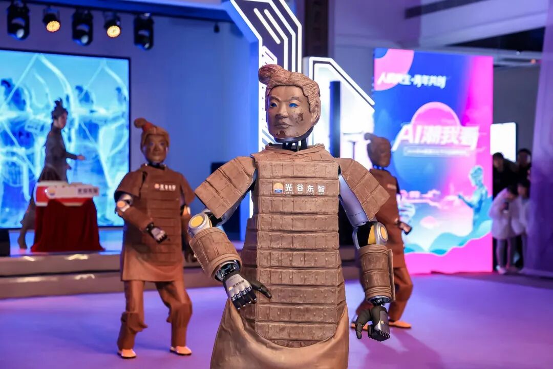 “人机共生”成为最亮眼的风景。在魏公·芳华里的AI国潮文化节,中央民族歌舞团的舞者与宇树机器人共舞《骏马归来》,动作精准同步,引得观众连连惊叹。荣获世界人形机器人运动会金牌的节目《秦俑魂》在此进行街区首秀,机器人舞者与真人演员默契配合,演绎出千年兵马俑的磅礴气魄。在五棵松万达广场的新年音乐会上,清华大学、北京舞蹈学院的艺术家与银河通用、联想等人工智能机器人同台,上演人机共创的未来艺术场景。