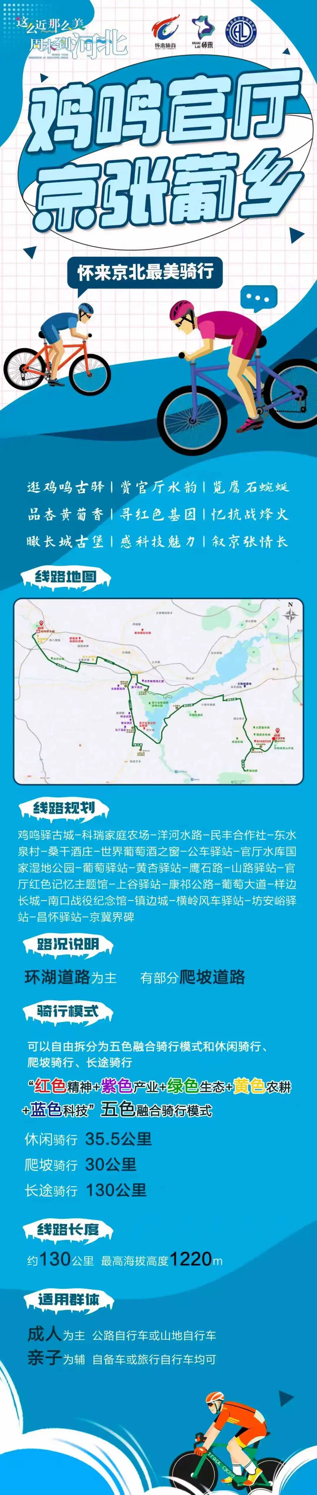 2025年12月30日,中国自行车运动协会根据《中国自行车运动协会关于推荐2025年“中国骑行地图”精品骑行线路有关事项的通知》(中自协字〔2025〕168号)要求,经意见征集和评审委员会评审,评选出100条代表性路线为“2025年中国骑行地图精品骑行路线”。其中,我县我县“鸡鸣官厅·京张葡乡”骑行路线入选名单。
