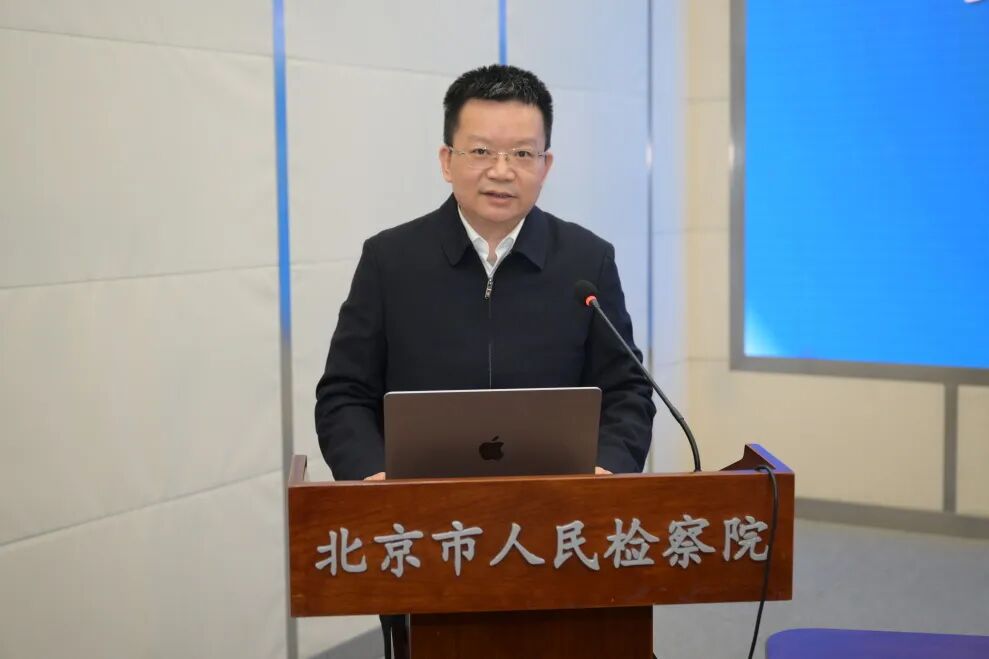 图为东城区检察院党组书记、检察长李华伟,中国政法大学涉外法治研究院副院长、教授王蔚介绍新书相关情况