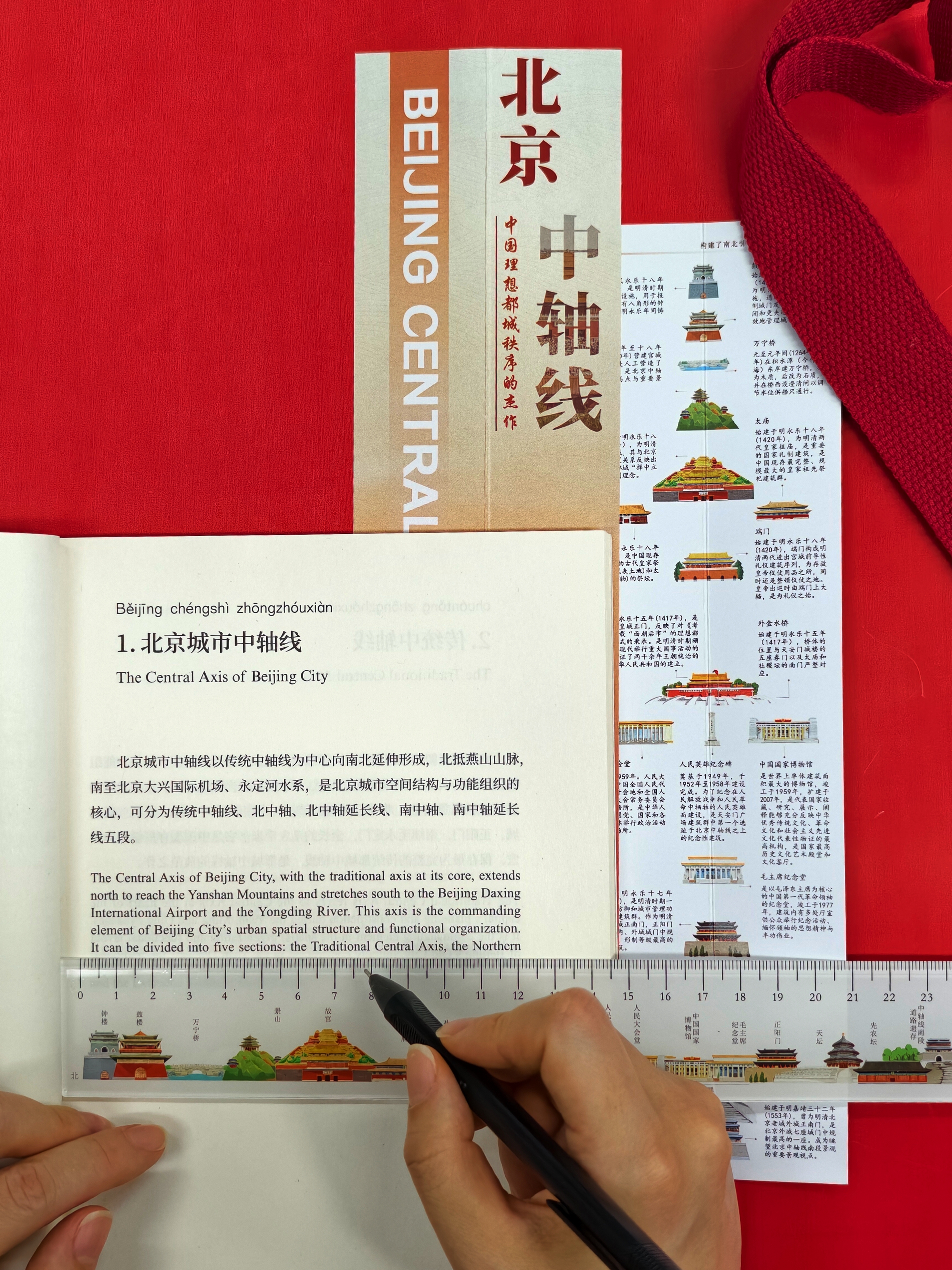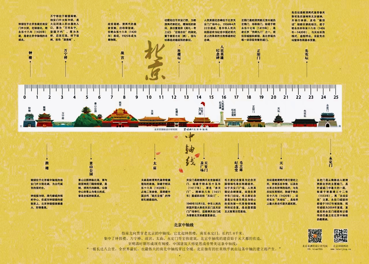 北京中轴线尺子,展示了北京中轴线的14个申遗点
