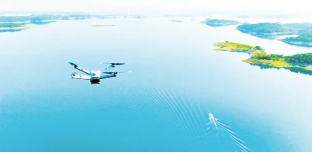 随着无人机离开机巢缓缓升空,几分钟后,监视器上便呈现出壮美的画面——阳光下的丹江口水库碧波荡漾、岸边的山坡丛林密布。