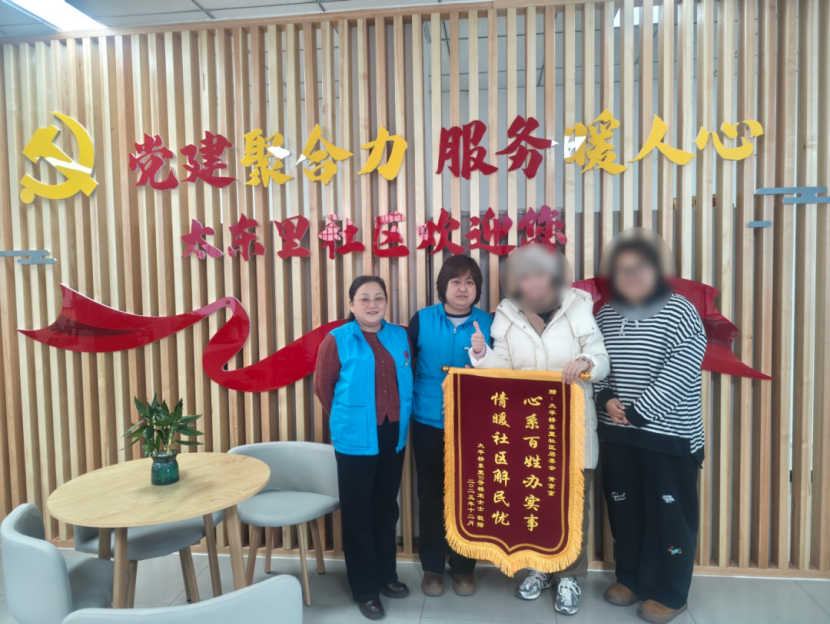 近日,家住太平桥街道太东里社区18号楼的宋女士将一面写有“心系百姓办实事 情暖社区解民忧”的锦旗送到社区服务站,对社区工作人员及法律顾问康律师的帮助表示感谢。