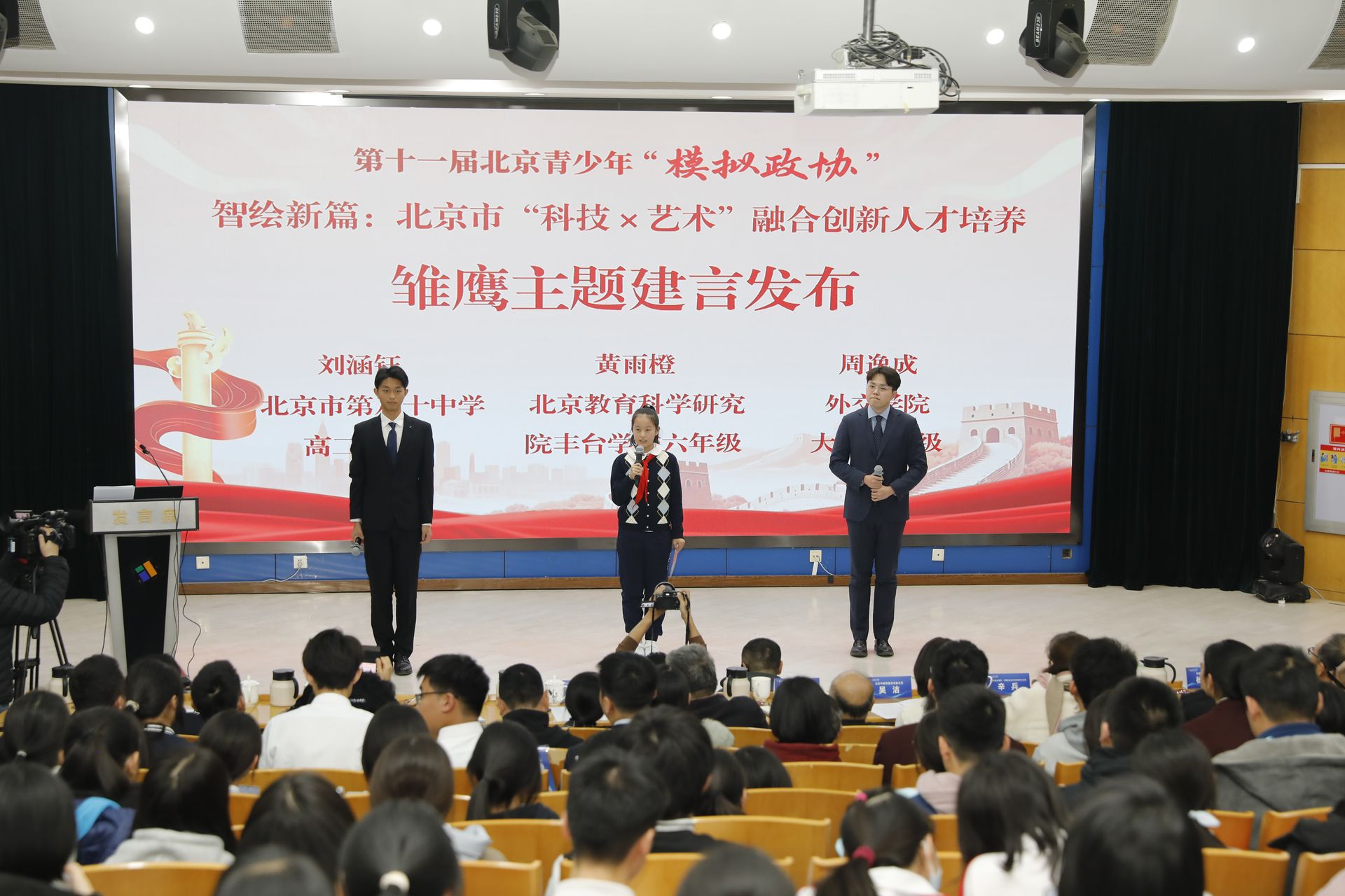 活动现场,来自外交学院、北京市第八十中学、北京教科院丰台实验小学的学生代表还联合发出“科学×艺术”雏鹰主题倡议,呼吁在跨学科融合中培育学生创新素养。北京市第八十中学作为北京市拔尖创新人才培养市级基地,其集团校长任炜东分享了学校通过“模拟政协”育人实践的经验。朝阳区教委主任、北京青少年创新学院朝阳分院院长徐志辉介绍了朝阳区探索“政协+教育”协同育人模式模式,以真实问题驱动学习,以跨界融合培养创新人才。