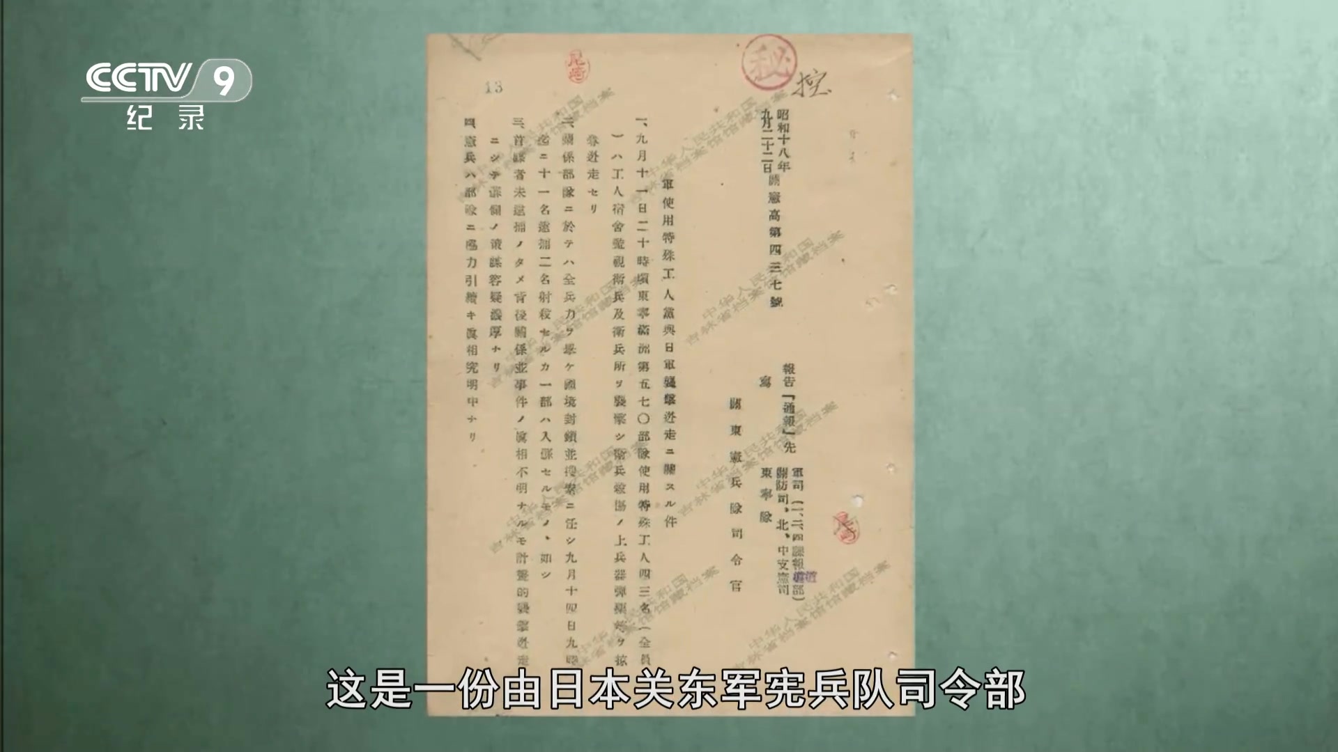 这是一份由日本关东军宪兵队司令部留存的绝密档案