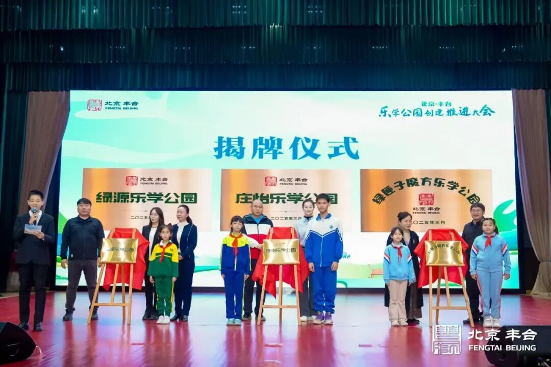 2025由北京市丰台区政府主办,区园林绿化局、区教委承办的“北京·丰台乐学公园创建推进大会”提出“教育+公园+治理”为核心,开发区域自然教育校本课。会上宣布了首批“校·园结对”试点学校名单,启动“丰台乐学公园创建工作”,我校荣幸入围,接受了乐学公园项目授牌,杨媛校长与学生代表、家长代表一起揭牌。