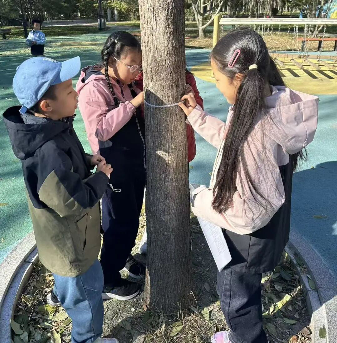 三年级“探秘大树的成长密码”用一场沉浸式实践,打破学科壁垒,让知识在真实场景中产生联结、发挥价值,将数学的测量、统计知识与科学的植物观察、探究方法深度融合,为学生搭建一个从课堂到生活,从理论到实践的学习桥梁。