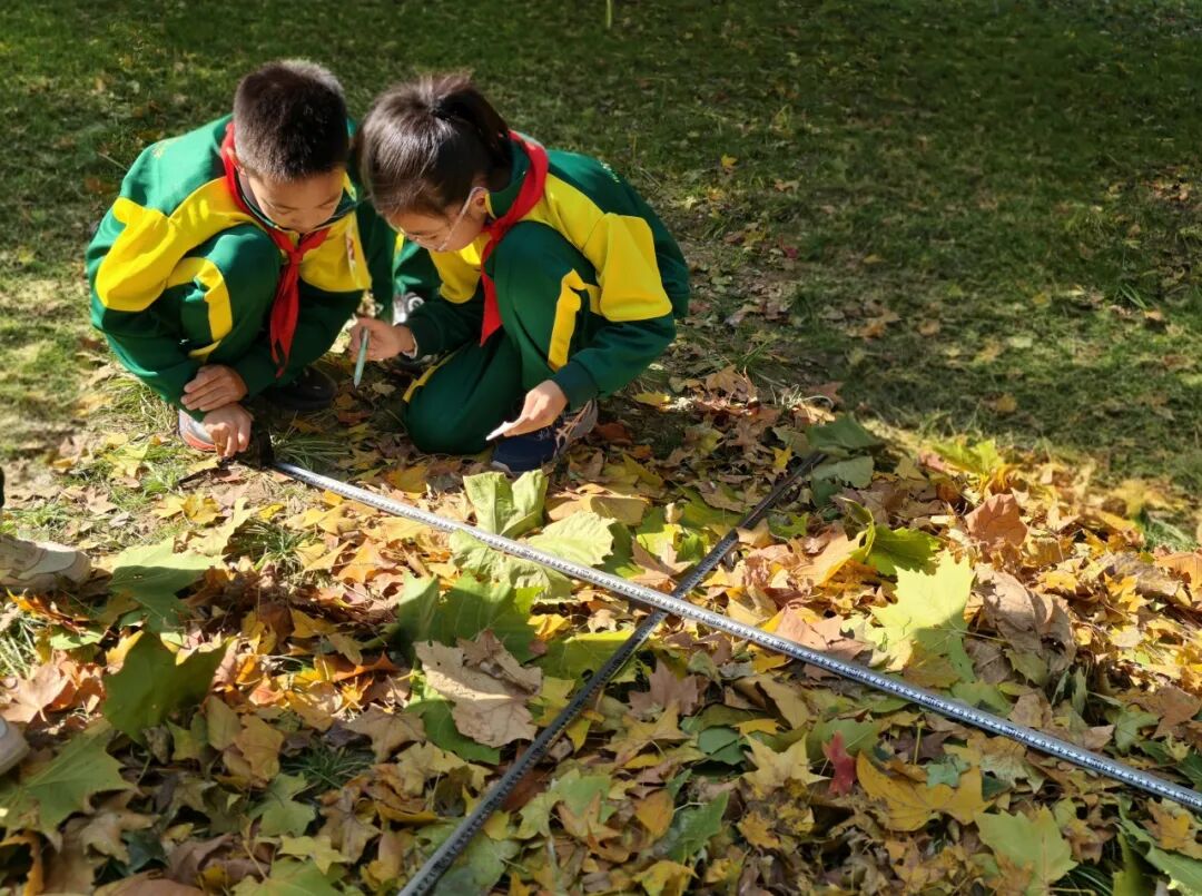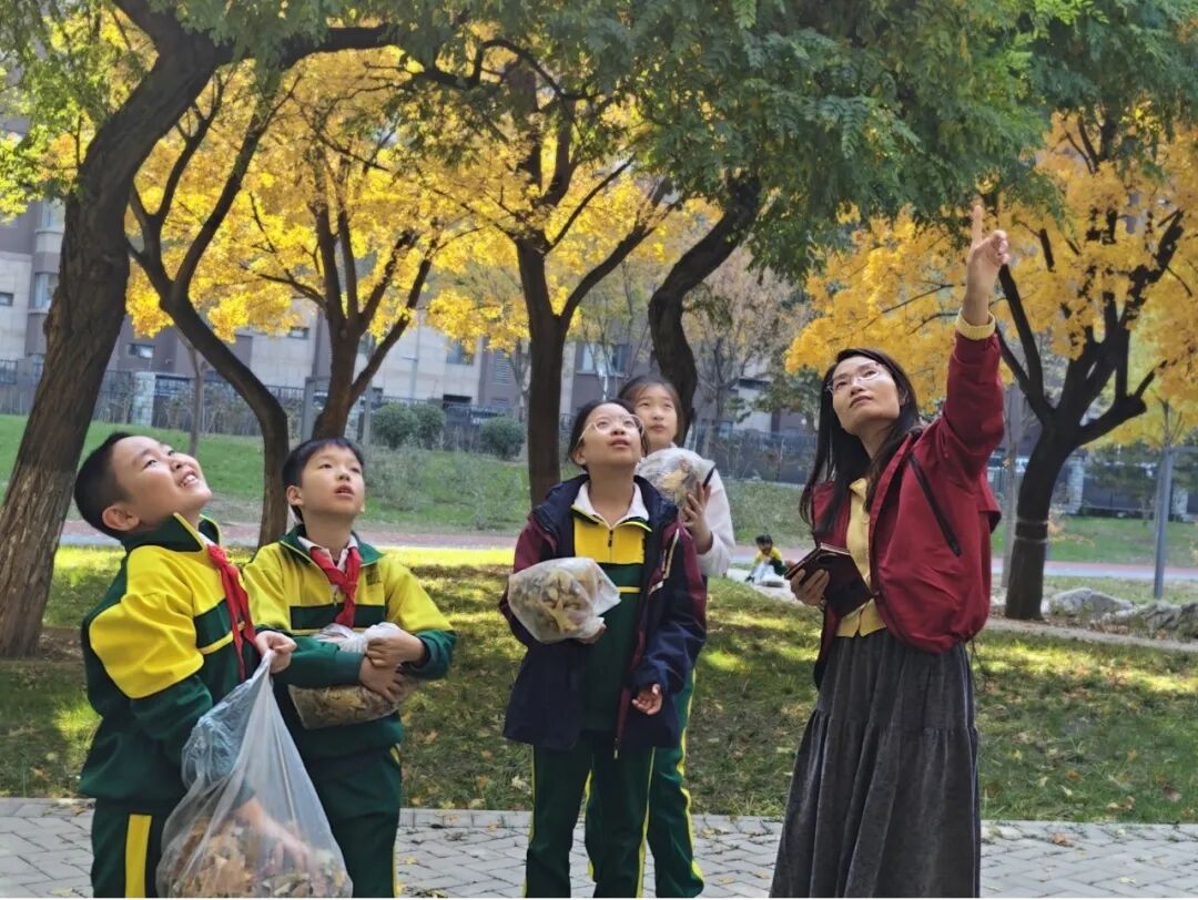 四年级学生以落叶为引,开启“一叶知秋·跟着落叶去旅行”跨学科课程。他们观察落叶纹理,探究其降解过程,将数学的数据分析、科学的生态知识、美学的艺术创作融为一体。学生在乐学公园的生态步道收集落叶,通过实验记录分析数据,结合数学统计绘制图表,在落叶拼贴画中感受自然之美,于讨论中深化对生命循环的理解,成就一场关于自然、科学与生命的深度对话。