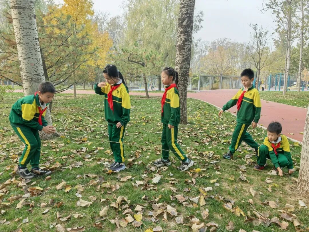 一年级学生在乐学公园数落叶、找图形、编故事,形状各异的落叶、数量可观的果实、形态规整的设施,把抽象的数学知识变得可触可感。学生融合语文、科学、美术等学科,在动手实践中提升合作与表达能力,真正感受到 “知识藏在生活里”。