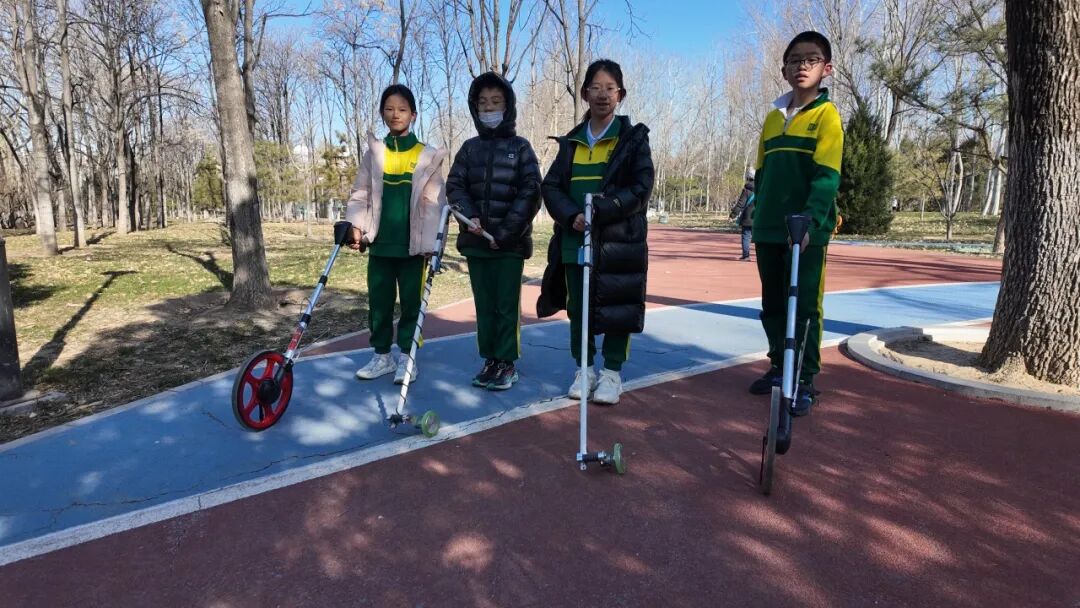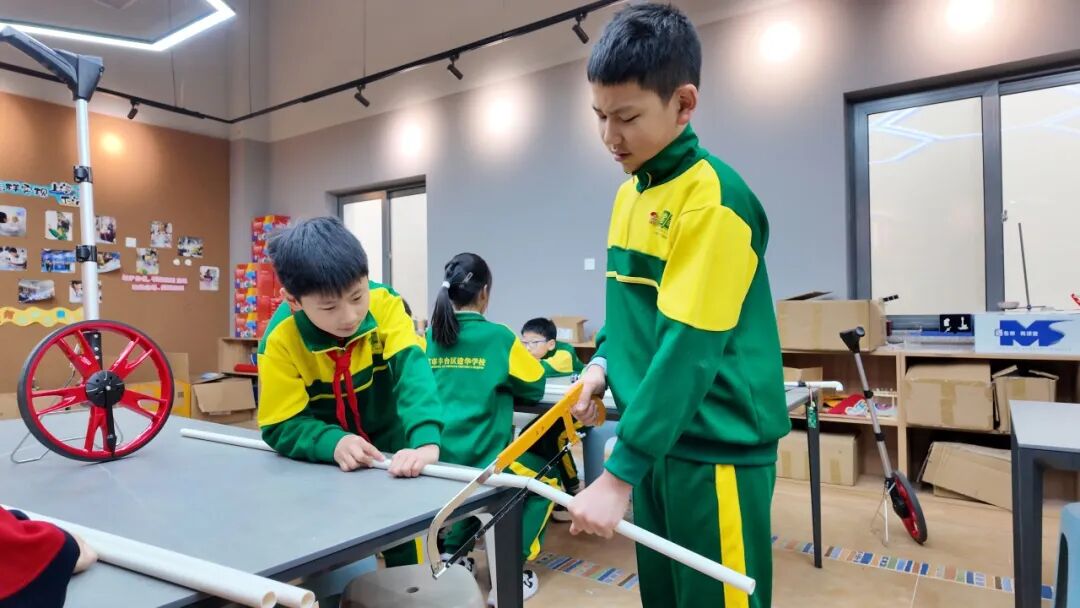 五六年级开展的跨学科课程《智径探微·数绘芯途——绿源步道全学科解码》,以“如何在校园微马拉松中取得优异成绩”为真实问题切入,打通数学、物理、工程、信息科技、健康教育与营养学等多学科内容,引导学生自主设计测量工具、实地采集数据、开展科学分析,并将研究成果转化为运动指导与健康科普成果,实现从“学知识”到“用知识”的学习跃迁。