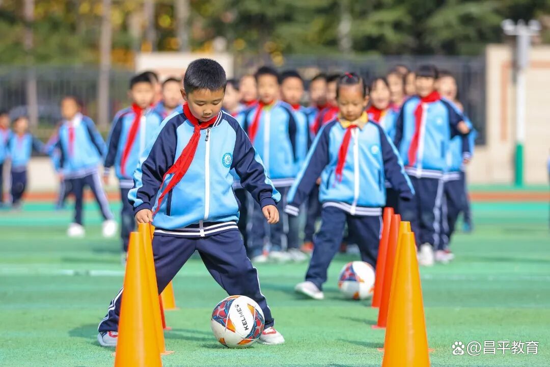 山东省青岛武川路小学的学生在课间进行足球训练。视觉中国供图